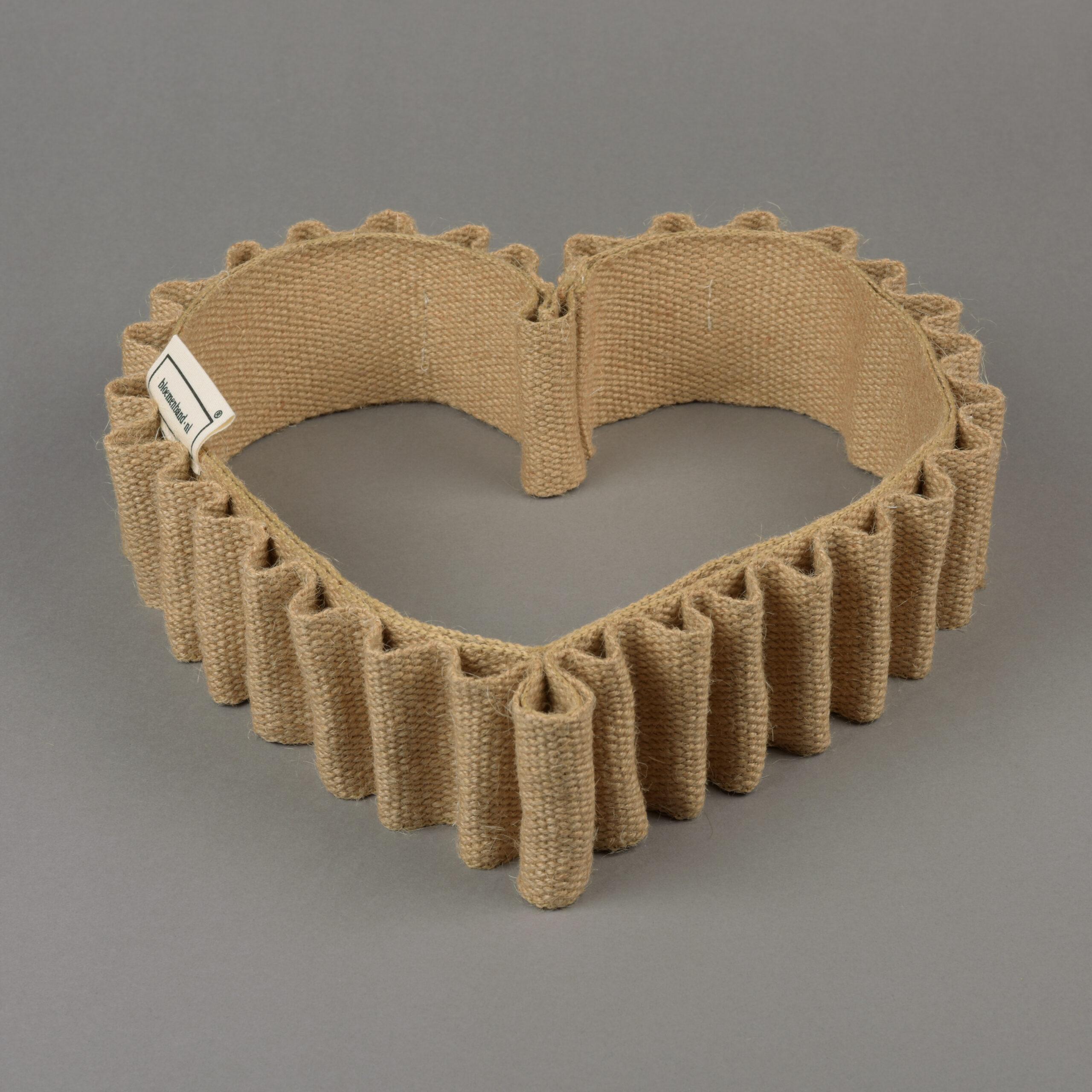 Het Bloemenband-Hart wordt handgemaakt in Amsterdam en is een stijlvolle en praktische keuze voor uitvaarten. Deze jute Bloemenband-Hart is ontworpen om op een uitvaartkist te plaatsen, kan bij een graf worden neergelegd en zelfs tot twee weken blijven liggen op een natuurbegraafplaats.